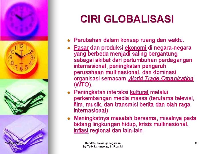 Di mana bentuk ini juga memiliki ciri khas sehingga mudah untuk . Contohnya globalisasi dalam aspek ekonomi adalah terciptanya pasar bebas yang . Globalisasi saat ini telah terjadi di semua bidang kehidupan, ekonomi salah satunya . Suparman ciri dari setiap individu di dunia tanpa. Selanjutnya har tilaar, mengemukakan ciri era globalisasi, yaitu.